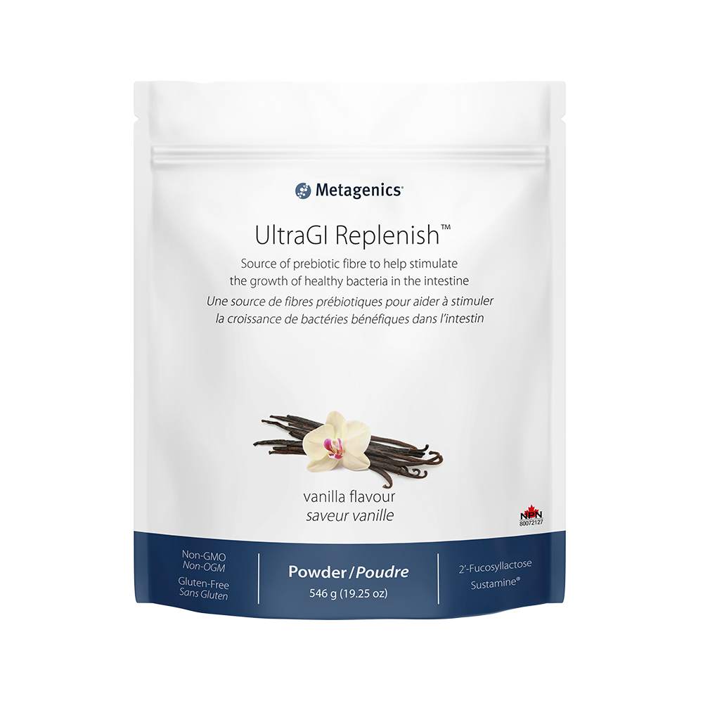 Adultes : Mélanger 2 mesures (39 grammes) d’ UltraGI Replenish avec 237 mL (8 fl. oz.) d’eau ou jus, ou selon les indications de votre professionnel de la santé. Prendre quelques heures avant our après la prise d’autres medicaments ou produits de santé naturels.